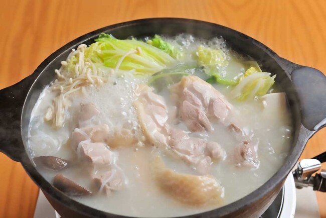 名物『鳥の水炊き』は、大ぶりにカットされたこだわりの鶏肉。この鶏の弾力・味わいは思わず「美味しい」と言ってしまう逸品です。鍋のお野菜もいいところだけを厳選しています。最後の雑炊は鶏の旨みと野菜の甘みがたっぷりと染み出たスープをご堪能いただける逸品です!!
