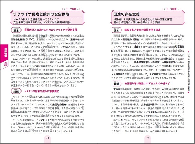 「政治経済」「国際情勢」「情報/社会」「環境/科学」「文化/スポーツ」の5つの分野にわけて、中学・高校生~もう一度学びたいと考えている大人の方まで、コンパクトにわかりやすく解説。