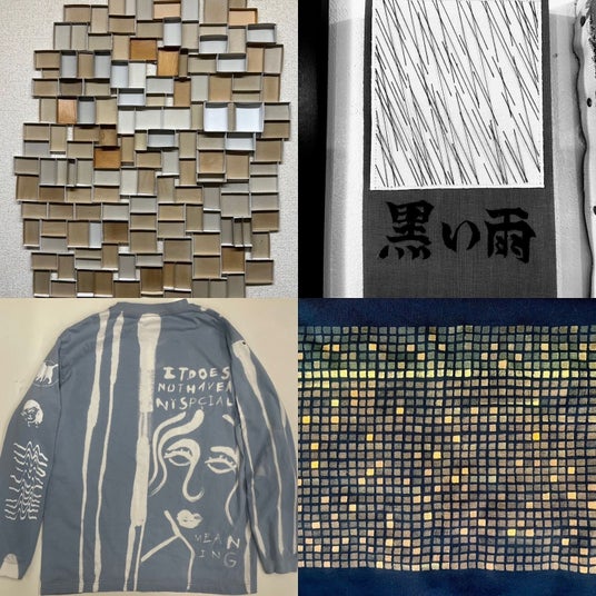 現在では画技、刺繍、コラージュなど、色々な要素を織り混ぜた個性溢れる作品を制作。