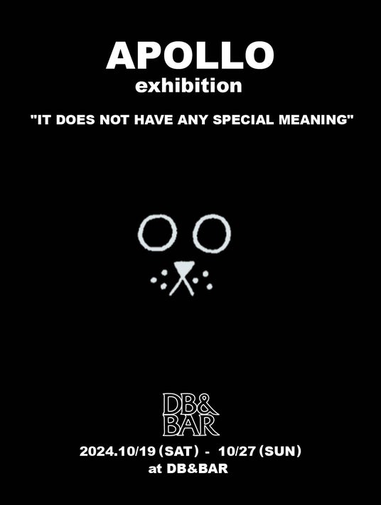 中目黒DB&BARにて、アーティストAPOLLO氏による個展 "IT DOES NOT HAVE ANY SPECIAL MEANING" を10月19日から10月27日まで開催いたします。
