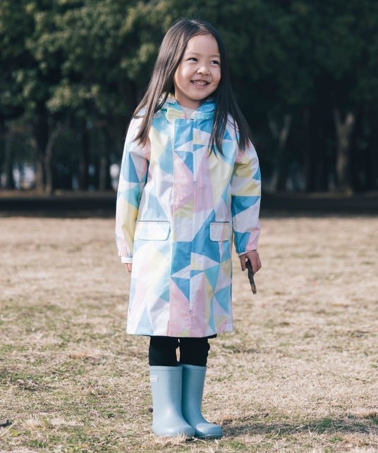 アクティブなお子様を雨から守る、防御力の高いレインコート。