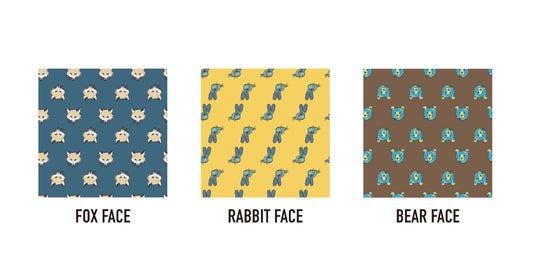 公式オンラインショップ限定柄デザイン「フォックスフェイス」「ラビットフェイス」「ベアーフェイス」