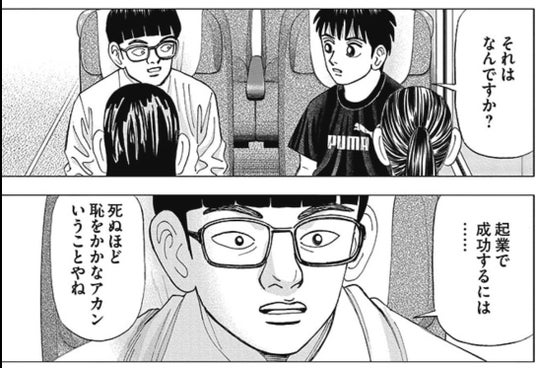 また、同作品内では起業の本質について、登場人物の中川が「起業で成功するには……死ぬほど恥をかかなアカンということやね」と語るシーンがあります。まさに、恥を恐れず挑戦する勇気こそが成功への第一歩であることを示唆しています。
