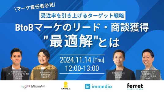 本ウェビナーでは、株式会社ベーシック、株式会社EXIDEA、株式会社immedioをお招きし、BtoBマーケティングにおけるターゲット戦略を前提としたリード獲得と商談獲得の最適解に関して、具体的な方法を詳しく解説いたします。