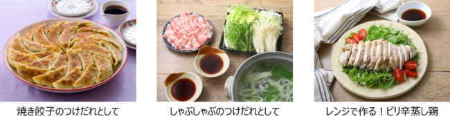 近年、ぽん酢使用メニューの中でも構成比が最も高い「つけかけメニュー」の中で、餃子やしゃぶしゃぶと言った肉メニューが伸長しております。この度、ぽん酢使用率の低い20代~30代の若年層に向けて、お肉に合う、ちょっぴり刺激的な辛いフレーバーとして本商品を発売いたしました。