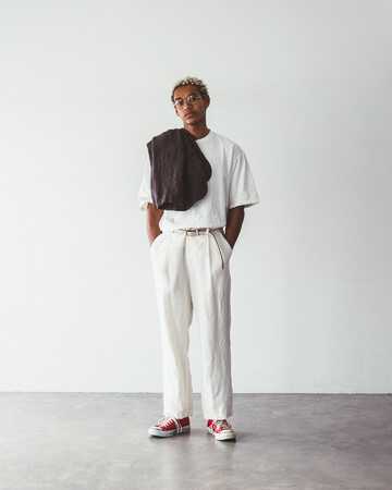スタンダード、シンプル、トラッド、ミリタリー、ワーク、トラッド、クラシック、モダン…etc。メンズ服の普遍的な要素を根底におきながら、染め、洗いを駆使しながら独自のバランスで融合させた服作りをコンセプトにしています。2021年春夏コレクションより新たな取り組みとして、ゴミを出さない洋服作り「UpcycleLino(アップサイクルリノ)」を発売いたしました。