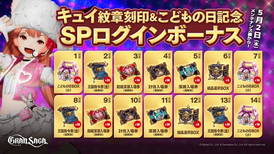 キュイ紋章刻印&こどもの日記念SPログインボーナス実施中!