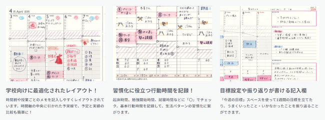 「NOLTY スコラ」シリーズは、「自ら学び、考え行動し続ける力の育成」をコンセプトに、中高生向けに開発された手帳で、現在、約1,000校に導入されています。近年では市販品として4月始まり手帳でも発売を開始し、「受験勉強などの学習管理に使いやすい」と、毎年多くのユーザーから人気を集めています。
