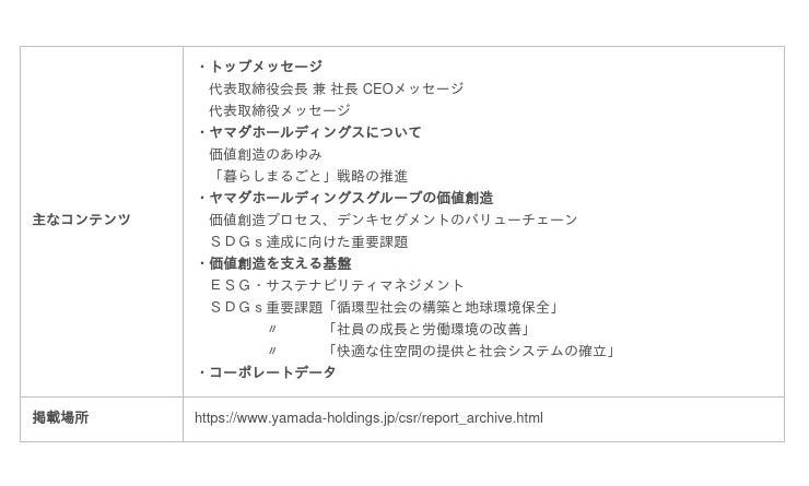 株式会社ヤマダホールディングス(本社:群馬県高崎市、代表取締役会長 兼 社長 CEO:山田 昇、以下、ヤマダホールディングス)は、統合報告書「INTEGRATED REPORT 2022」を公開いたしましたので、お知らせいたします。