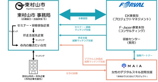 さらに、東村山市在住の女性に対し、ITスキルなど市場価値の高いデジタル教育を提供し、同一委託内で支援する市内中小企業を優先とした就業・就労支援に取り組むことで、収入向上と市内雇用創出・多様な働き方を推進している市としての価値の向上を図ります。