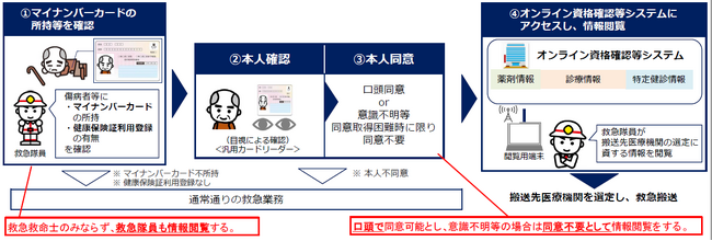 そこで、救急隊が傷病者の所持しているマイナンバーカードを活用して、医療機関選定に必要な情報を迅速に把握することにより、適切な医療機関への早期搬送が可能になることが期待され、また、傷病者の精神的・肉体的な負担軽減を図る効果も期待されています。