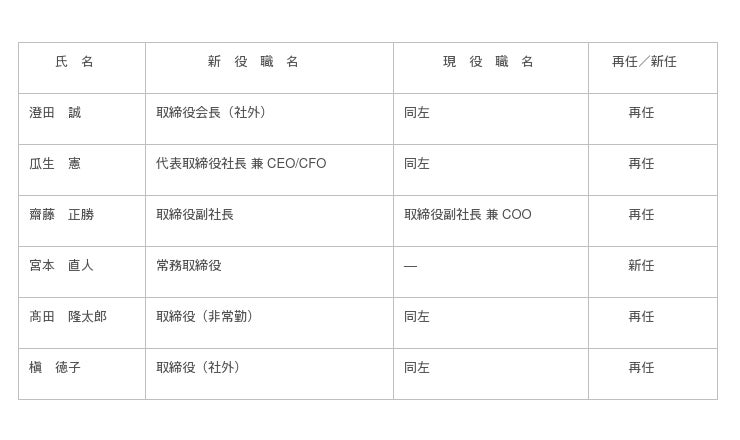 ※上記6名は、2023年6月30日開催予定の当社第17期定時株主総会に付議予定の取締役(監査等委員である取締役を除く)の候補者であり、上記取締役人事は、同株主総会および同株主総会終了後の取締役会での承認をもって正式決定となります。