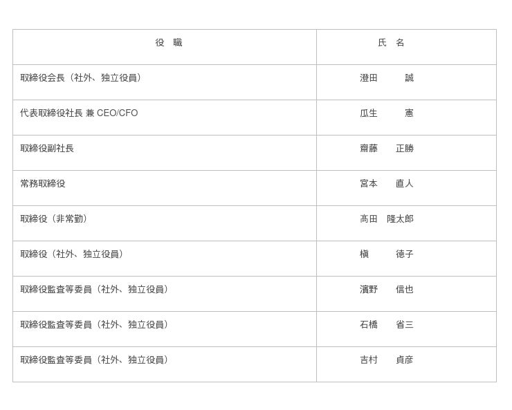 2023年6月30日開催予定の定時株主総会並びに取締役会への付議が決議された後の当社の役員体制は以下を予定しております。
