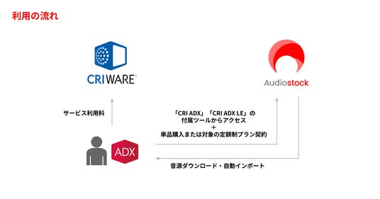 世界最大級のロイヤリティフリーのストックミュージックサービス「Audiostock」(https://audiostock.jp)を運営する株式会社オーディオストック(岡山市北区、代表取締役社長:西尾 周一郎、以下「当社」)は、株式会社CRI・ミドルウェア(本社:東京都渋谷区、代表取締役社長:押見 正雄、以下「CRI」)が提供するゲーム開発者向けのサウンドミドルウェア「CRI ADX」「CRI ADX LE」とのサービス連携を開始いたしました。