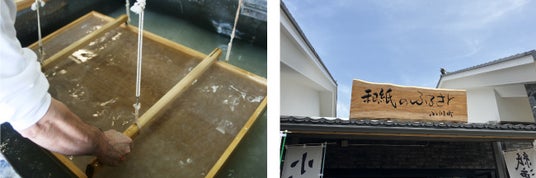 伝統工芸施設では和紙作りを見学することも可能。すぐ裏手の関連施設では子どもたちが遊べるふれあい広場があり、電動モビリティの貸し出しも行われ、大人から子供まで楽しめる施設となっています