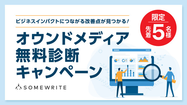 コンテンツマーケティングの運用改善にご評価をいただいていることを受け、この度、オウンドメディアの分析と、運用に並走するコンサルティングに特化したサービスの提供を開始しました。新サービスの提供開始にあわせ、5社限定で、オウンドメディアの無料診断キャンペーンを開催いたします。オウンドメディアの運用をご担当されている方はぜひこの機会にご検討くださいませ。