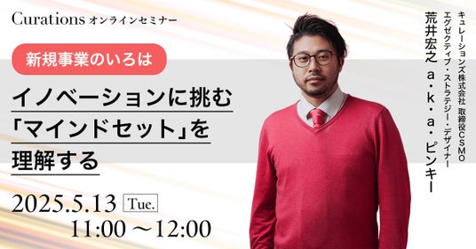 顧客企業のビジネス変革を成功に導くキュレーションズ株式会社(本社:東京都渋谷区、代表取締役社長:根本隆之、以下当社)は、【新規事業のいろは】イノベーションに挑む「マインドセット」を理解するを2025年5月13日(火)に開催いたします。