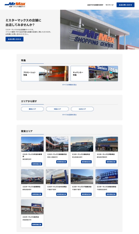 ▼「ミスターマックス催事・イベント募集サイト」の画面イメージ