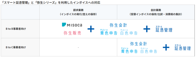 「スマート証憑管理」と「弥生シリーズ」を利用することで、インボイス制度に対応することができます。