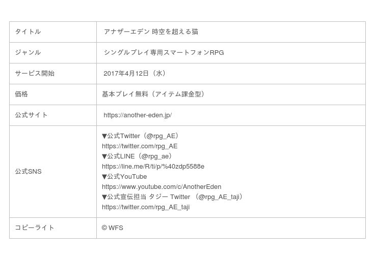 株式会社WFS(本社:東京都港区、代表取締役社長:井坂 友之、グリー株式会社100%子会社)は、App Store、Google Play(TM)で配信中のシングルプレイ専用スマートフォンRPG「アナザーエデン 時空を超える猫」が、4月12日(月)に4周年を迎え、メインストーリー第2部 東方異象編「時の女神の帰還」後編「結」の配信を開始したことをお知らせします。