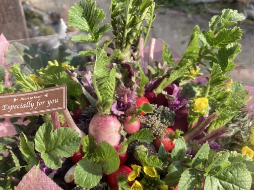 土づくりからこだわり、化学肥料や農薬を使わず育てた野菜のブーケです。