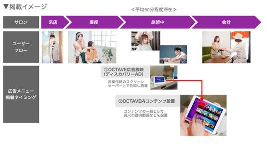 この提携により、広告主様はSNS上のユーザーコミュニケーションとして制作したタイアップ動画を、OCTAVE内でも掲載できるようになりました。これにより、美容サロンの来店者に対して認知拡大から商品理解、購買促進までをシームレスに設計したコミュニケーションプランの構築が可能となります。