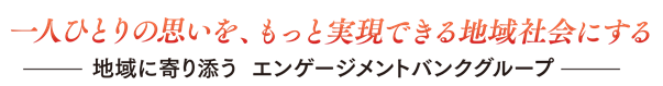 当行は、「一人ひとりの思いを、もっと実現できる地域社会にする」をパーパスに掲げ、今後も地域の活性化など社会的価値の提供を通じて、地域に寄り添うエンゲージメントバンクグループを目指してまいります。