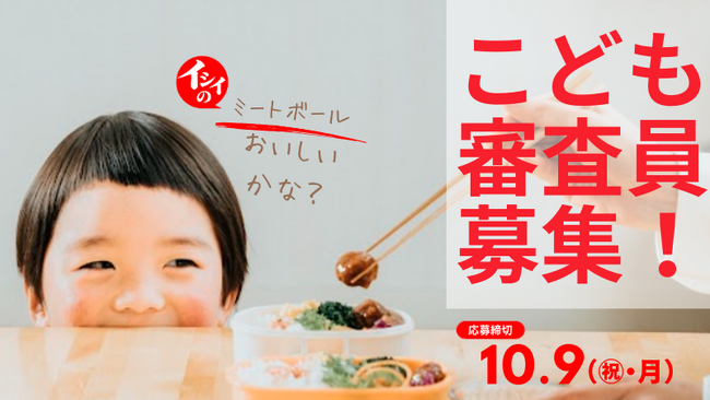 2024年、『イシイのおべんとクン ミートボール』は50周年を迎えます。それを記念し、わたしたちは動画の制作を進めております。その動画にご出演をいただき、また『イシイのおべんとクン ミートボール』において、みなさまからお声をいただきたいと考えております。そこでお子さまに担っていただく大事な役目として【こども審査員】です。是非、みなさまのお力を借りて、記念となる動画を作りたいと思いますので、ふるってご応募ください。