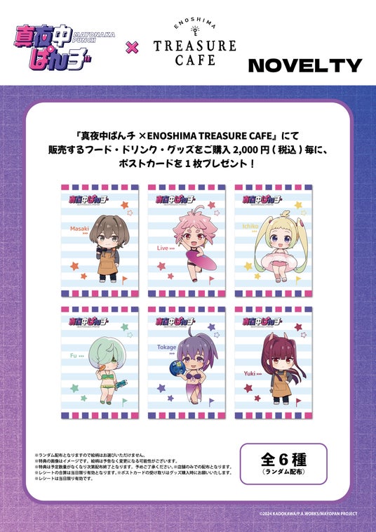 2024年9月12日(木)から、株式会社タカラッシュ(本社:東京都品川区/代表取締役:齋藤多可志)が運営するENOSHIMA TREASURE CAFEにて、アニメ『真夜中ぱんチ』とのコラボカフェを開催いたします。