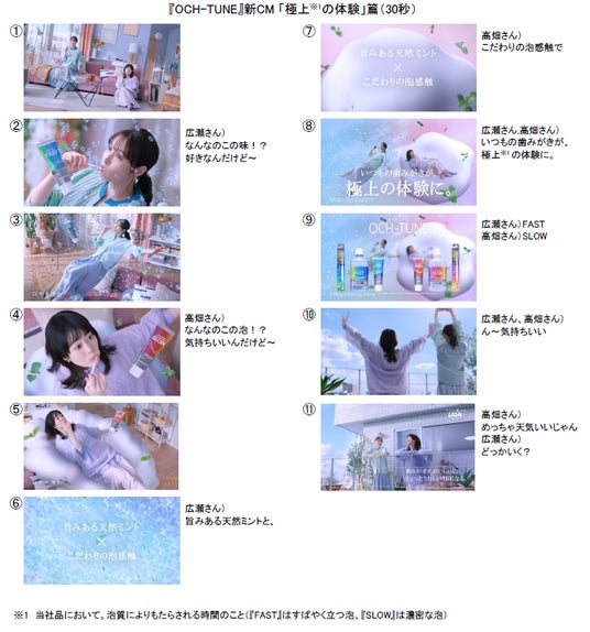 ライオン株式会社(代表取締役兼社長執行役員:竹森 征之)は、「スタイルで選ぶ」オーラルヘルスケアを提案するブランド『OCH-TUNE FAST/SLOW』において、俳優の広瀬アリスさん、高畑充希さんを継続起用した新CM「極上(※1)の体験」篇(15秒、30秒)を2025年5月7日(水)から全国で放映いたします。