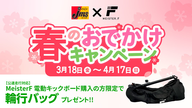 今、話題の規制緩和で取り入れやすくなる電動キックボード、購入を検討している方も多いのではないのでしょうか。神奈川県北部の方必見!ジェームス246玉川店、相模原店にて、3月18日~4月17日までの期間中、Meister F公道走行対応 電動キックボードをご購入の方に輪行バックをプレゼントします。持ち運びに便利な輪行バックがもらえるチャンスをお見逃しなく。