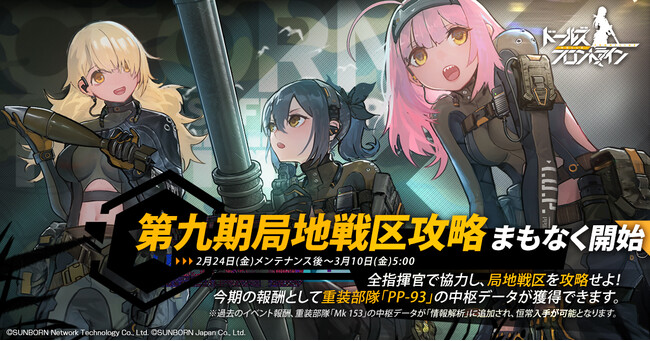 株式会社サンボーンジャパンは、スマホ向け戦略型シミュレーションゲーム『ドールズフロントライン(以下、「ドルフロ」)』において、全指揮官で協力するイベント「第九期局地戦区攻略」が開催されることをお知らせいたします。