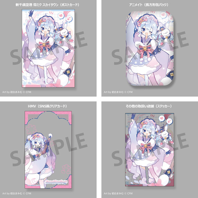 2023年1月25日(水)~、新千歳空港 雪ミク スカイタウン、アニメイト一部店舗(北海道内店舗、池袋本店、秋葉原本館、大阪日本橋店、名古屋店、通販)、全国のHMV、HMV&BOOKS online等で販売を開始。初白まみむさんの描き下ろしイラストを使用した店舗別特典はなくなり次第終了となりますので、ぜひお早目にお買い求めください。