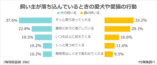 ・「そっと寄り添ってくれる」(犬の飼い主:37.6%、猫の飼い主:33.2%)。