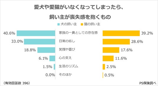 ・犬の飼い主は、「日常の癒し」を、猫の飼い主は、「心の支え」をより失うと回答。