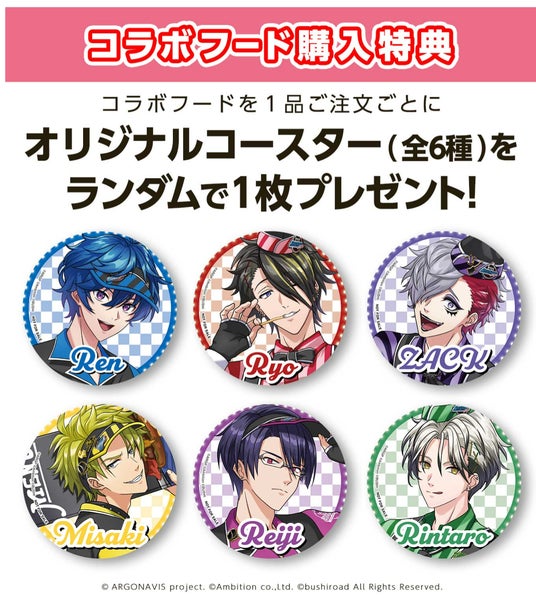 コラボフード1品ご注文ごとにオリジナルコースター(全6種)からランダムで1枚プレゼント!