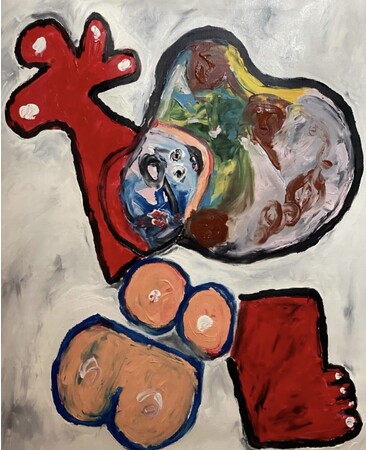 キャリア初期の頃のペインティング作品は、白と黒の絵具のみによる量感のあるモノロクローム表現が多くを占めていましたが、近年はカラフルな配色とダイナミックなストロークに画面全体からナイーブな生の気配を感じさせる作風となっています。手跡がありありと感じられる平面作品から発展するように立体作品も数多く発表。