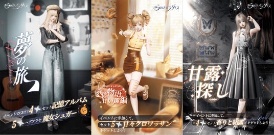 4月11日から『夢の旅』、4月17日から『変装物語・甘い趣編』、4月25日から『甘露探し』が開催されます!期間限定星5セット「甘々クロワッサン」、や星4セット「記憶アルバム」、「香りと結露」を無料で入手できるので、ぜひ参加してみてください!