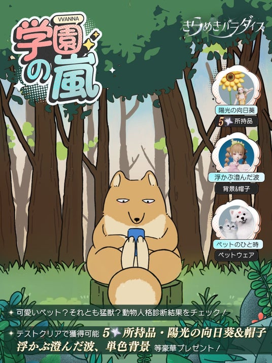 山神様からまたまたお誘いが!山神様と奇妙な冒険『学園の嵐』へ行こう!毎日一つのストーリーが解放され、サプライズプレゼントを受け取れます。性格診断を通して、あなたの魅力を探しましょう!イベントは全部で22日間。毎日無料プレゼントがありますよ。