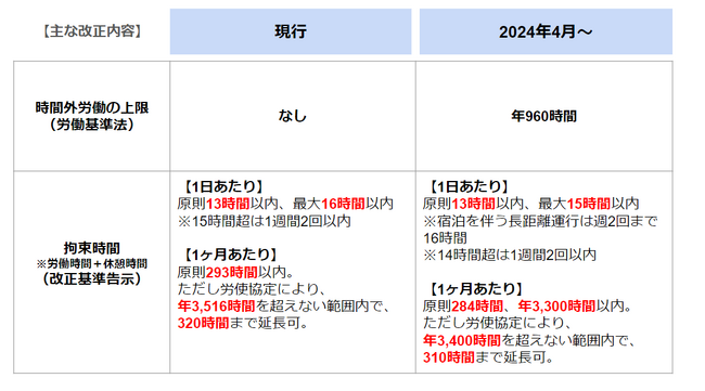 2024年4月から開始される労働時間の上限規制は、トラックドライバーの働き方改革を目的のひとつとしています。