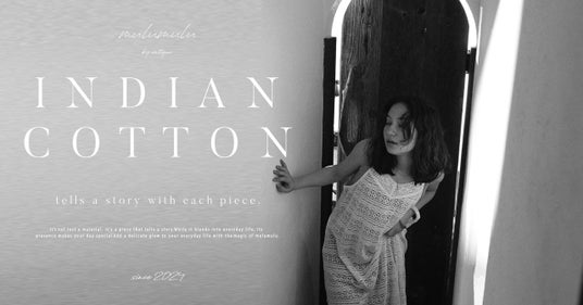 The Story of [mulumulu]自然の風合い、心地よい肌触り。身にまとう美しい生地「インド綿」の魅力とは?――特有の風合いと感触で人々を魅了する、人気の高いインド綿。今回 antiqua(アンティカ)では、インドのジャイプールで職人によって作られた生地を選びました。驚くほど精緻な職人の手仕事や伝統的な作法によって完成される、一つ一つが丁寧に手間をかけて作られた、拘りの詰まった生地を使用しています。