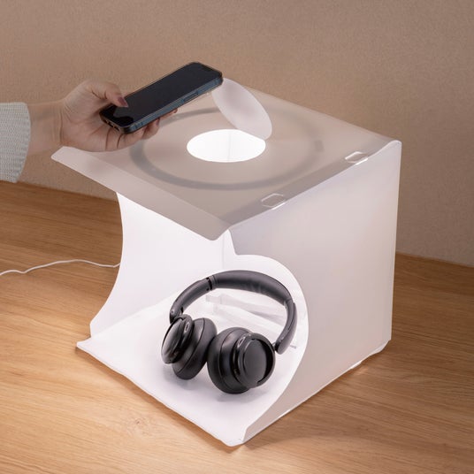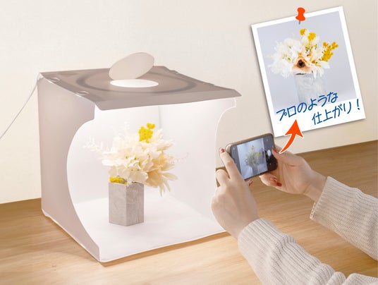 リングライトでまんべんなく被写体を照らし、スマホでキレイに撮影可能な簡易撮影ボックス