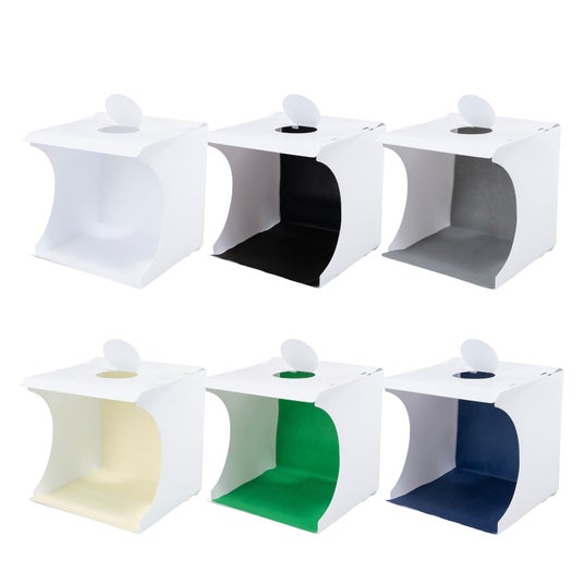 リモコンで操作ができ、光の色は3種類(昼白色・電球色・昼光色)から選べます。また、明るさも10段階で調整できるので、撮影シーンに合わせて細かく設定できます。用途や雰囲気に合わせて使い分けできる、6色の背景シート付き。グリーンやブルーの背景は、合成・編集作業にも最適です。