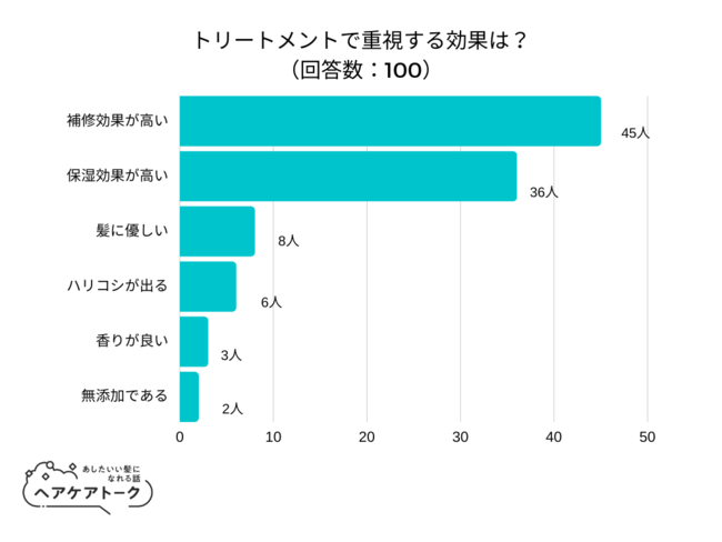 「トリートメントで重視する効果は?」とアンケート調査した結果、1位は『補修効果が高い』でした。