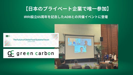 ネイチャーベースのカーボンクレジット創出・販売事業を展開するGreen Carbon株式会社(代表取締役:大北潤、以下Green Carbon(グリーンカーボン))は、2025年6月9日、フィリピン・ロスバニョスにある国際稲研究所(以下、IRRI)本部で開催された、アジア開発投資銀行(以下:ADB)との共催イベント「The Future of Global Food Systems Forum」(以下:本イベント)に、パネリストとしてCOO妹尾が登壇したことをお知らせします。
