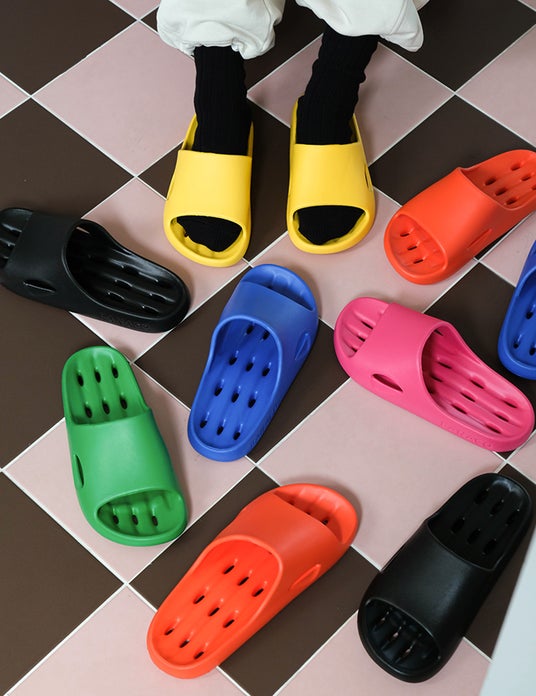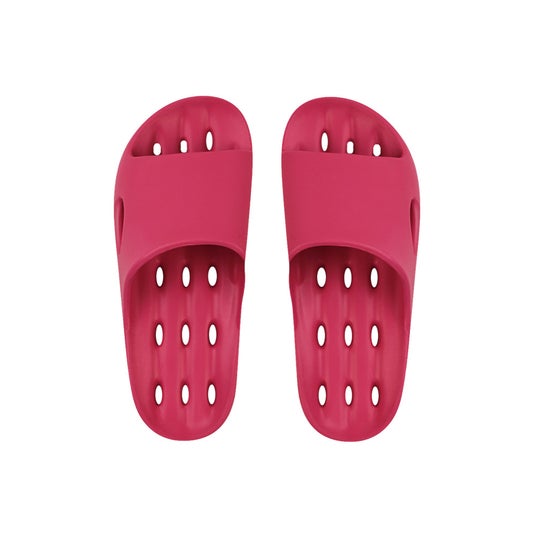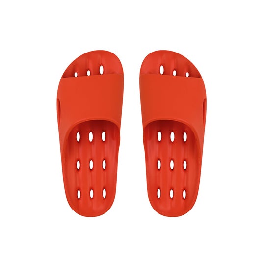 ビビッドなカラーが目を引く超軽量シャワーサンダル。片足約100g(Mサイズ)と驚きの軽さで、ベランダやバスルームはもちろん、ワンマイルシューズとしても活躍します。底面15個+サイド2個、計17個の水抜きホールを備え、水はけの良い設計。湿気がこもりにくく、清潔さを保ちやすい仕様です。5本溝のアウトソールとストライプパターンが滑りを抑え、安定感のある履き心地を実現。柔軟性と耐久性に優れたEVA素材を使用し、ねじっても変形しにくいしなやかさが特徴。2.5cmソールがさりげない存在感をプラスします。