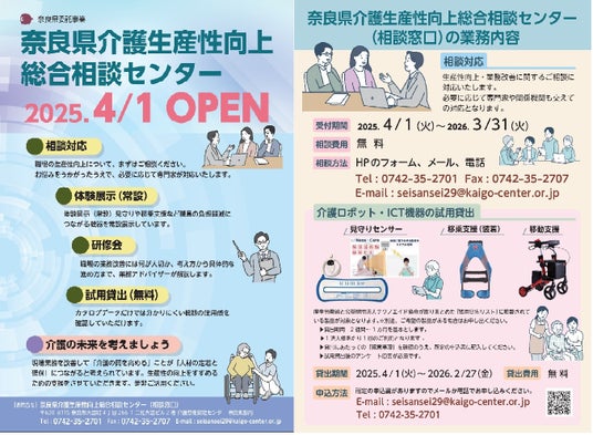奈良県介護生産性向上総合センターが2025年4月1日より開設されました。介護事業所の生産性向上・業務改善に関するご相談に対応いたします。