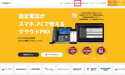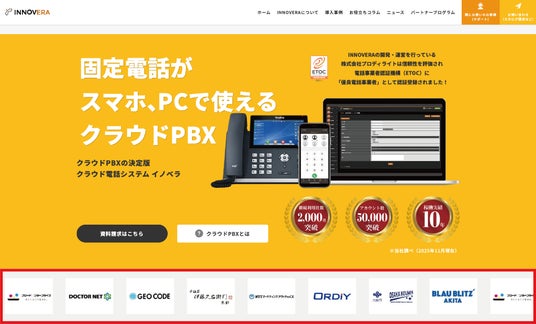 電話のDXを推進する株式会社プロディライト(大阪市中央区:代表取締役社長 小南 秀光、証券コード:5580、以下プロディライト)は、クラウドPBX「INNOVERA」のサービスサイトにおいて、ナビゲーション改善を実施し、グローバルメニューへの導入事例コンテンツの追加ならびに、TOPページにおける導入企業ロゴの表示位置を変更したことをお知らせいたします。