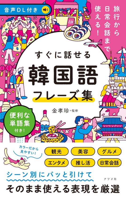 実用書や児童書、教養書を発行する出版社、株式会社ナツメ社(東京都千代田区、代表取締役:田村正隆)は『音声DL付き 旅行から日常会話まで使える!すぐに話せる韓国語フレーズ集』(https://amzn.asia/d/fbAoRb5)を7月23日に発売します。