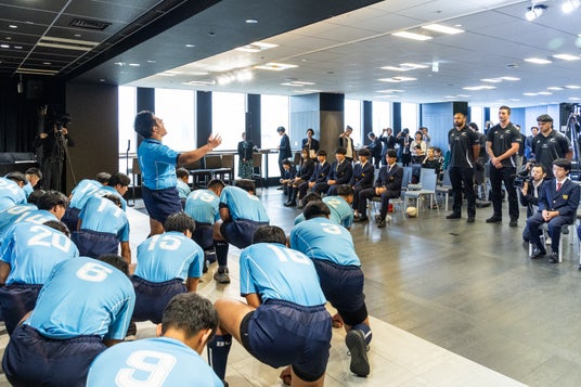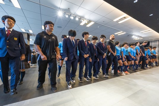 ニュージーランド航空は10月25日(金)、リポビタンDチャレンジカップの一環で10月26日(土)に実施される日本代表とのテストマッチのために来日しているラグビーニュージーランド代表オールブラックスの選手3名(パトリック・トゥイプロトゥ選手、ジョシュ・ロード選手、ウォレス・シティティ選手)を招き、「ニュージーランド航空主催 オールブラックス x 日本の中高生交流イベント」を実施しました。